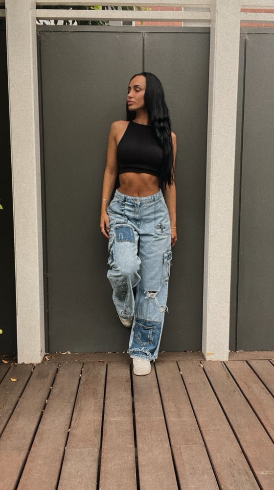 One of a kind reworked Jeans. Best suited size 6 or 8